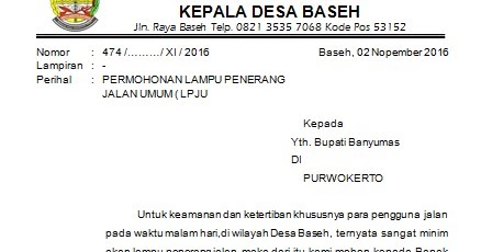 Contoh surat permohonan lampu penerang jalan (lpju).
